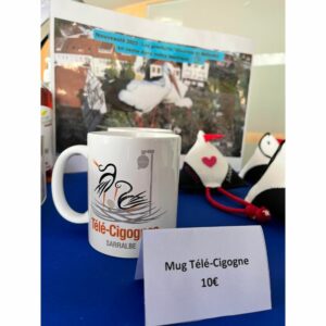 Entdecken Sie das Paar Maurice und Mélodie aus Sarralbe als großes Modell (14€ pro Stück) sowie ihre Kleinen (9€ pro Stück) mit Tele-Storch-Tassen (10€), die vor Ort im Fremdenverkehrsamt verkauft werden.