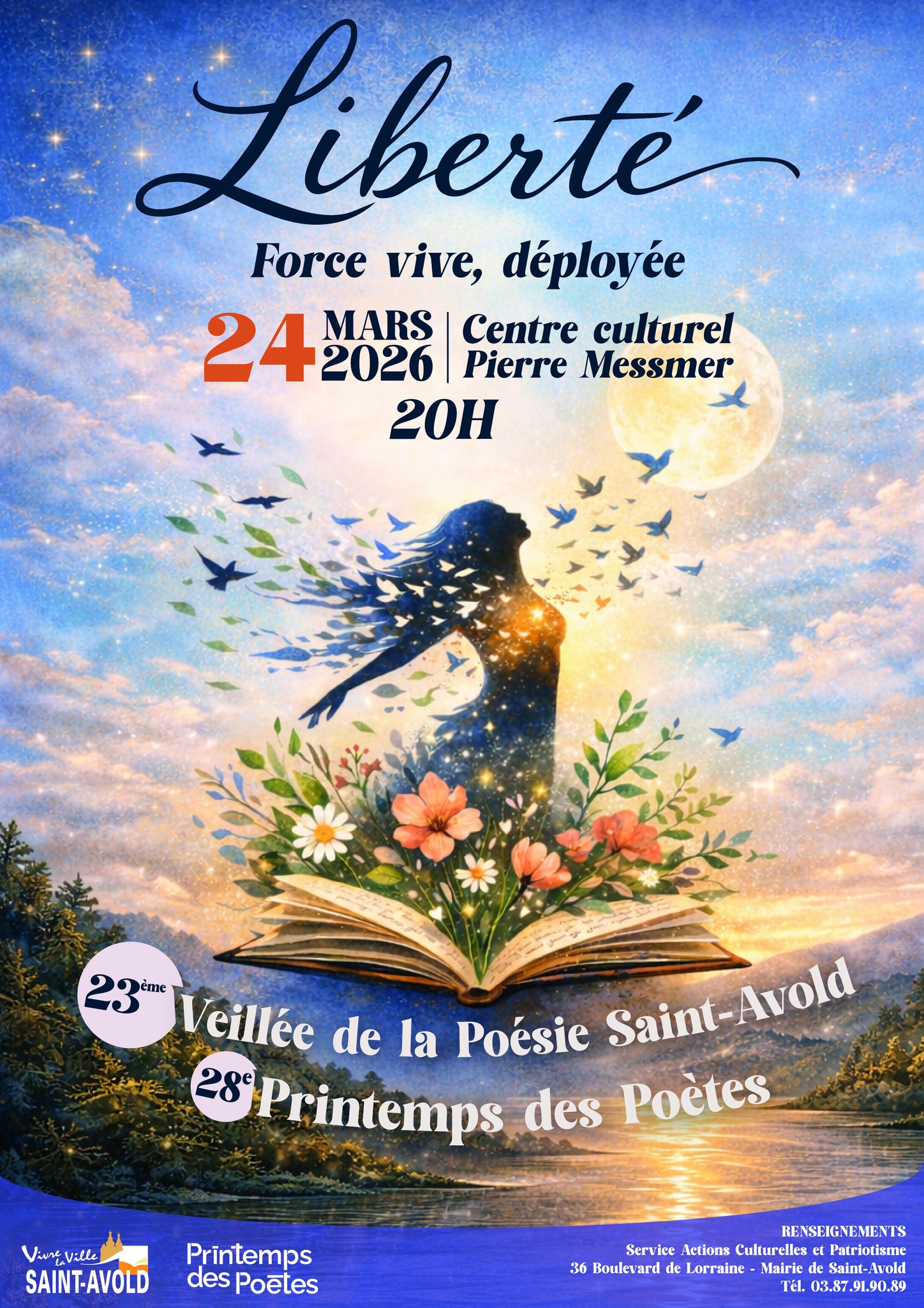 23ème veillée de la poésie Sur le thème : « La liberté. Force vive, déployée » Dans le cadre du 28ème Printemps des Poètes. Informations au 03 87 91 90 89. + zum Google Calendar hinzufügen + iCal / Outlook export Datum 24 März 2026 Uhrzeit 20 h 00 min Ort Centre Pierre-Messmer Veranstalter Ville de Saint-Avold Diese Veranstaltung teilen