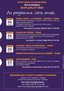 - À partir de 14h30 : « Guing-lanta » : la légende -saison 2 chasse au trésor, château gonflable. Inscription au 06 47 14 92 66