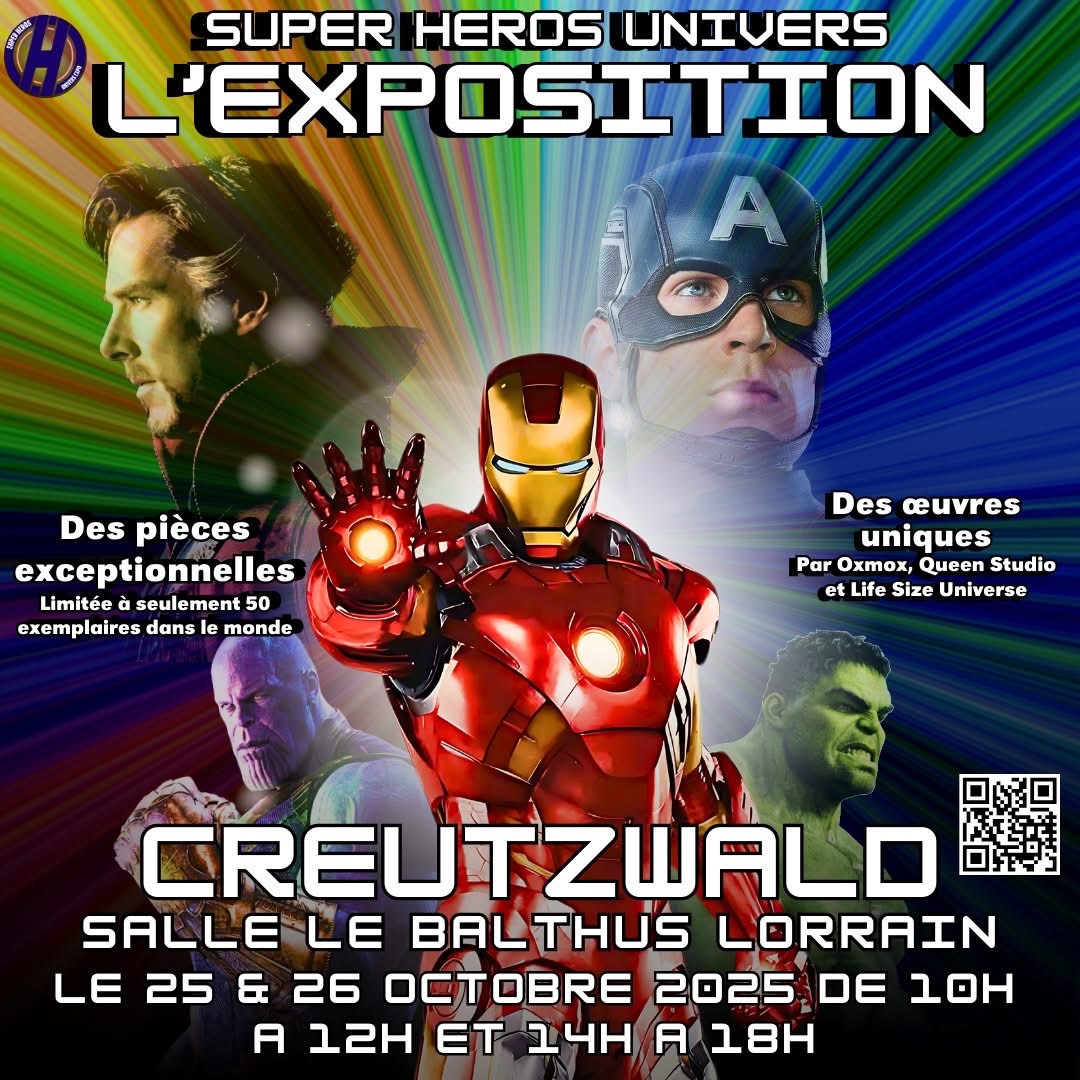 Super Héros Univers Expo arrive à Creutzwald pour un week-end unique où petits et grands pourront plonger dans le monde incroyable de leurs héros préférés !