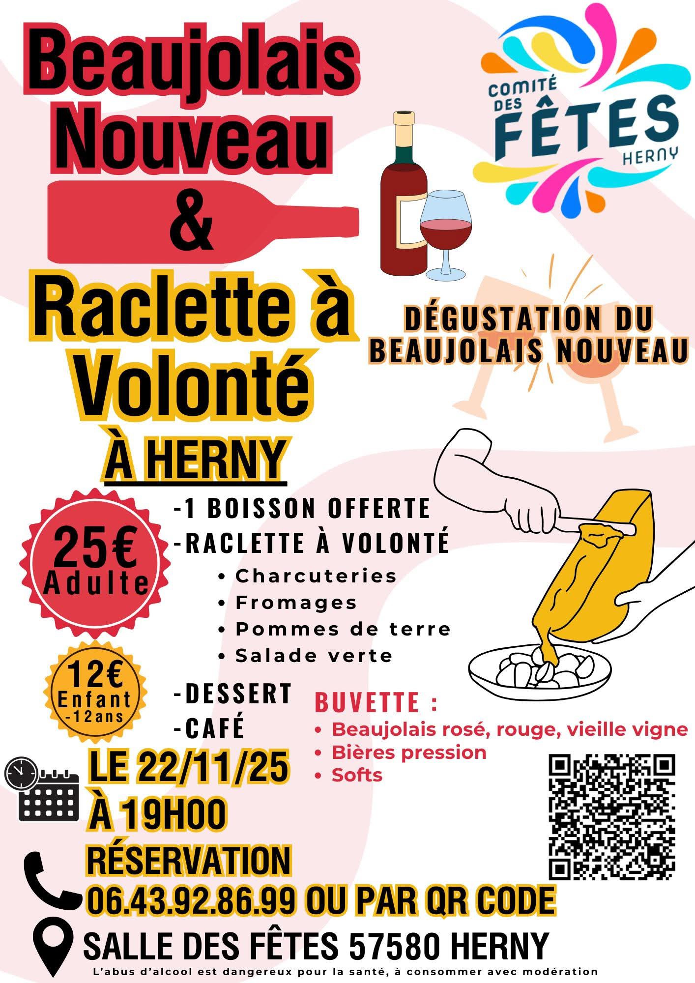 Beaujolais Nouveau & Raclette à volonté Réservation au 06 43 92 86 99 ou sur https://www.helloasso.com/associations/comite-des-fetes-de-herny + Add to Google Calendar + iCal / Outlook export Date 22 Nov 2025 Expired! Time 19 h 00 min Location Salle des Fêtes de Herny Organizer Comité des fêtes d’Herny Share this event