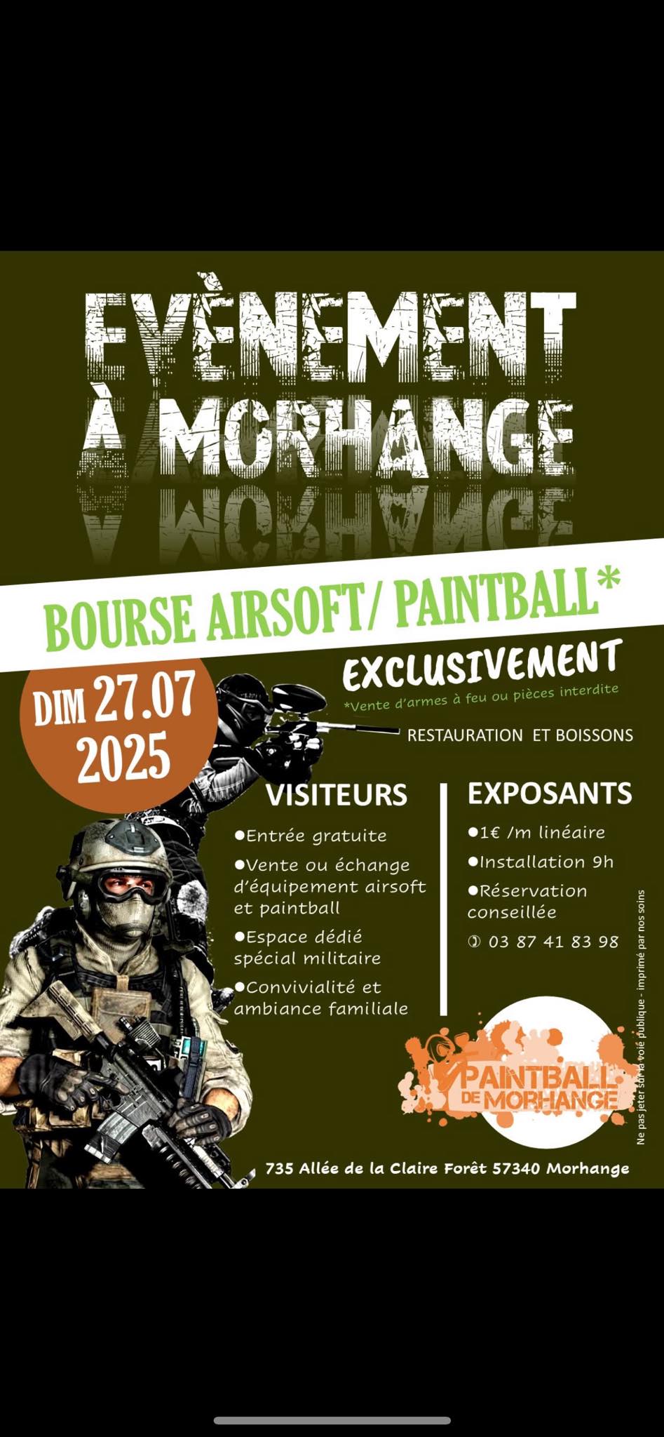 Bourse airsoft/paintball Entrée gratuite. Plus d’informations sur https://www.facebook.com/profile.php?id=61550893954154 + Ajouter à mon Agenda Google + iCal / Outlook export Date 27 Juil 2025 Expiré! Lieu Paintball de Morhange 735 allée de la Claire Forêt 57340 MORHANGE Organisateur Paintball de Morhange Téléphone 03 87 41 83 98 Email contact@paintball-morhange.fr Partagez cet événement