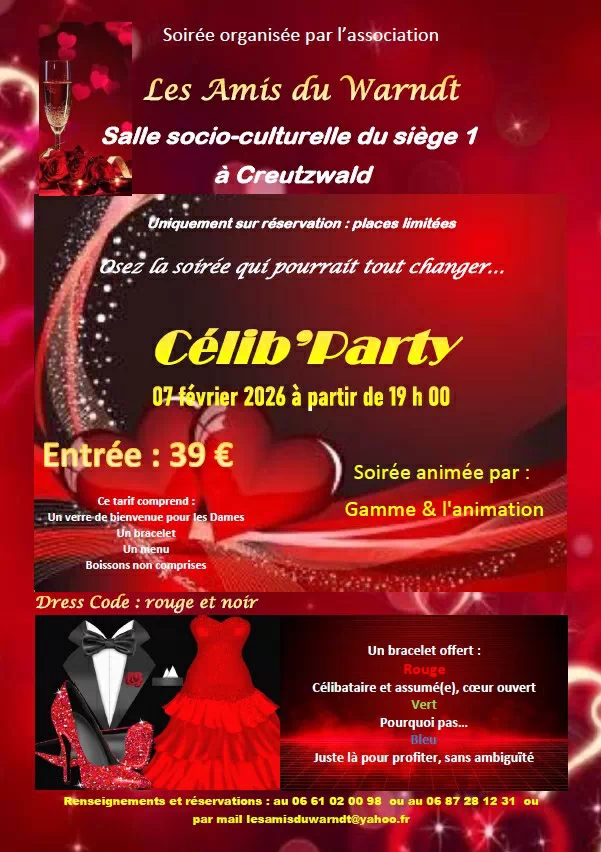 L’association Les Amis du Warndt vous invite à une soirée festive, élégante et conviviale, placée sous le signe des rencontres et de la bonne humeur. Soirée spéciale célibataires… mais pas seulement !