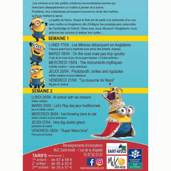 Centre aéré – vacances de printemps à la MJC – Les minions speaks English