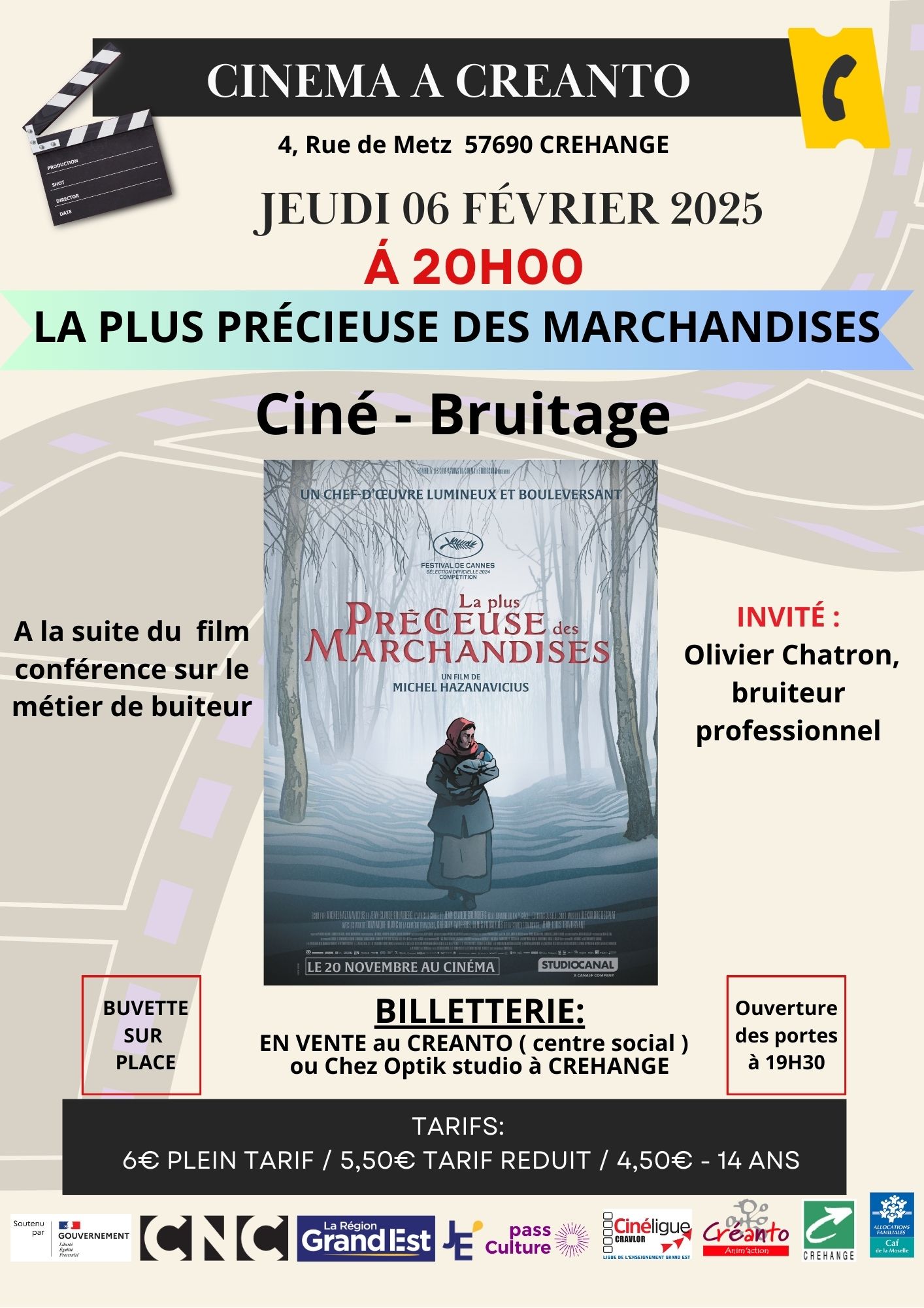 Mais ce n’est pas tout ! À la suite de la projection, nous aurons l’honneur d’accueillir Olivier Chatron, bruiteur professionnel de renom. Lors d’une conférence interactive, il vous dévoilera les secrets du métier de bruiteur, un art discret mais essentiel du cinéma. Vous aurez également l’opportunité de participer à une démonstration en direct et de découvrir les coulisses de la création sonore.