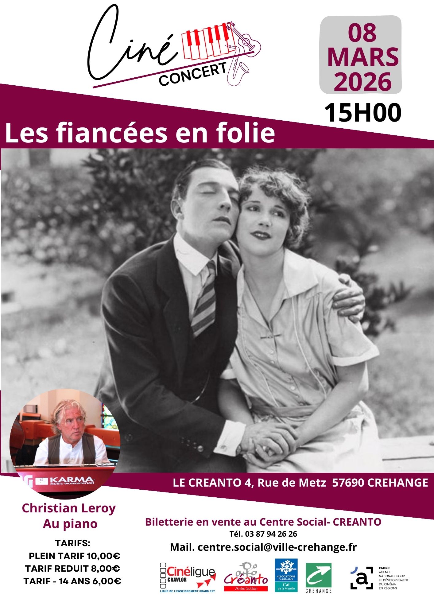 Le premier ciné-concert de Créhange autour d’un film muet « Les fiancées en folie » de Buster Keaton.