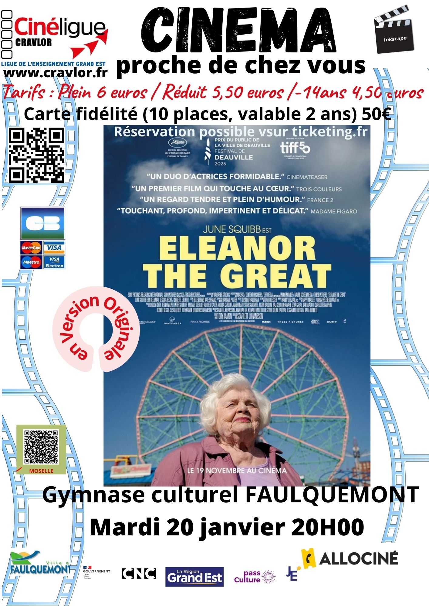 Carte de fidélité (10 places, valable 2 ans ) à 50€.