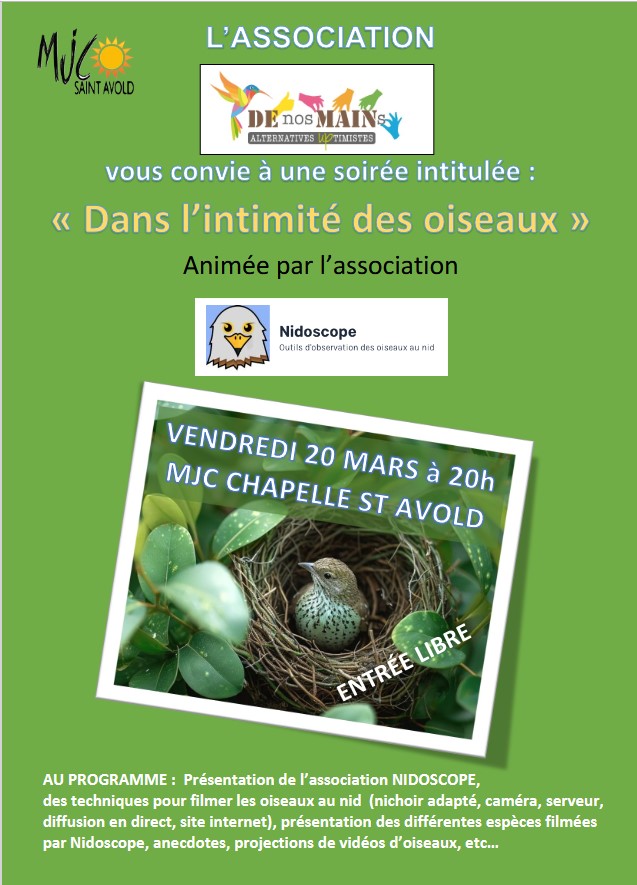 DEnosMAINs vous convie à une soirée « Dans l’intimité des oisaux ».
