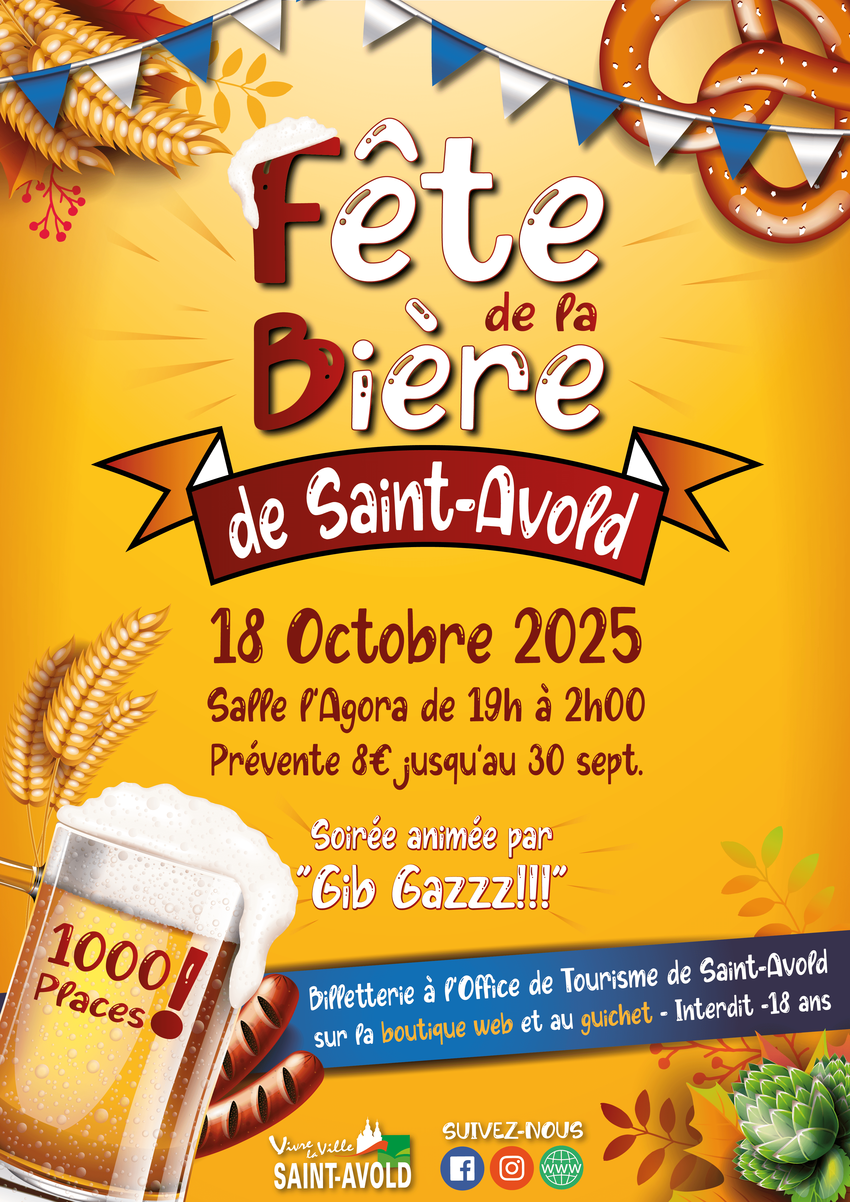 La fête de la bière aura lieu le samedi 18 octobre 2025 à l’Agora de Saint-Avold de 19h à 2h. L’ambiance sera assurée par le groupe « Gib gazzz ! », restauration et buvette sur place.