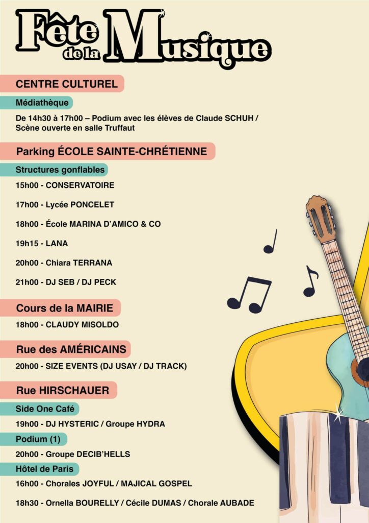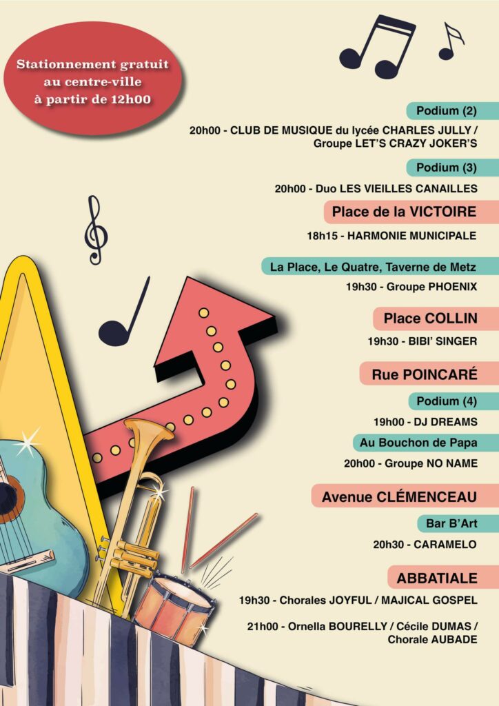 Fête de la musique à Saint-Avold Animations musicales et restauration dans les rues du centre-ville. Programme : + Ajouter à mon Agenda Google + iCal / Outlook export Date 21 Juin 2024 Expiré! Heure 18 h 00 min Lieu Centre ville de Saint-Avold 57500 Partagez cet événement