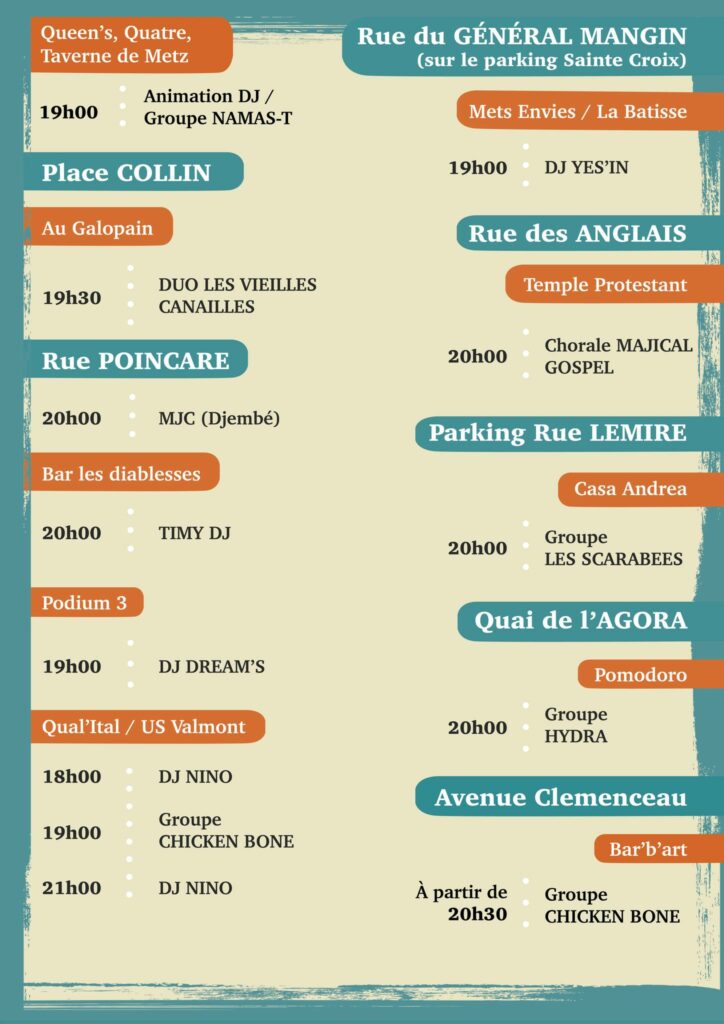 Fête de la musique à Saint-Avold Place à la fête ! Voici le programme de la fête de la musique 2023 à Saint-Avold : + Ajouter à mon Agenda Google + iCal / Outlook export Date 21 Juin 2023 Expiré! Heure 14 h 30 min Lieu Centre ville de Saint-Avold 57500 Partagez cet événement