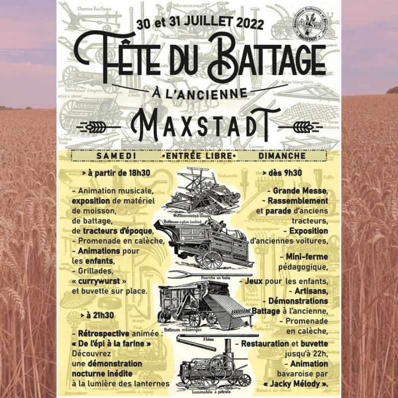 Fête du battage à l’ancienne organisée par l’Association Culturelle et Sportive de Maxstadt dans les rues du village.