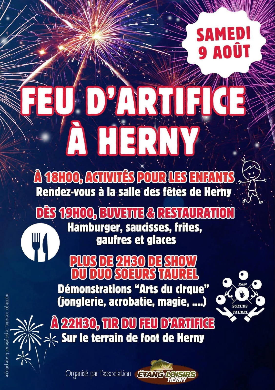 Feu d’artifice Restauration sur place. Tirage du feu d’artifice vers 22h30-23h. Informations au 07 71 73 70 03. + Ajouter à mon Agenda Google + iCal / Outlook export Date 09 Août 2025 Expiré! Heure 19 h 00 min Lieu Terrain de foot - HERNY Organisateur L'Association Etang et Loisirs Partagez cet événement