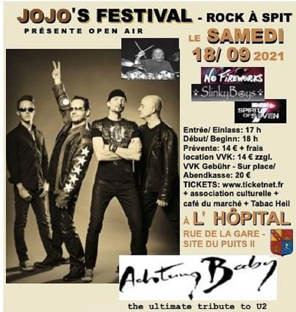 Organisé par une association de musiciens et d’amateurs de rock, l’évènement connaît toujours du succès. Sur la grande scène du Puits II, en extérieur, se succèderont 4 groupes : No Fireworks, Lynky Boys, Spirito Seven et Achtung Baby. Accueil dès 17h et concerts à partir de 18h. Les billets sont en prévente au tarif de 14 € au café chez Cynthia et tabac Heil à L’Hôpital, ou au Schlouck à Falck.