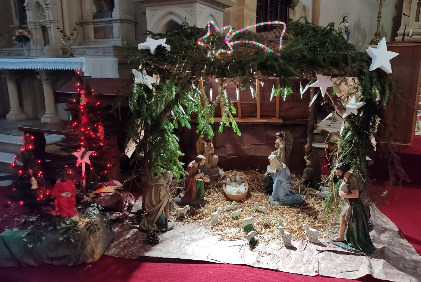 L’église se présente sous la forme d’une croix latine, durant la période de Noël, nouvel an elle est dotée d’un éclairage étudié, d’une musique d’ambiance classique et d’une décoration extérieure adaptée aux moments, pour mettre en valeur le bâtiment et rassembler les paroissiens dans la joie des fêtes de fins d’année. La crèche, traditionnelle avec une note contemporaine, est réalisée chaque année par Éric et les enfants de la paroisse de l’église Saint-Grégoire le Grand. Elle représente la scène de la nativité avec une décoration à base de sapin de la forêt communale. Illumination autorisée par l’archiprêtre qui dessert la paroisse les samedis, dimanches et jours fériés de 18h à 21h. Devant cette remarquable réalisation on retrouve son âme d’enfant et la magie de Noël. Ainsi dans l’église tout porte à la magie, aux rêves, et au recueillement.