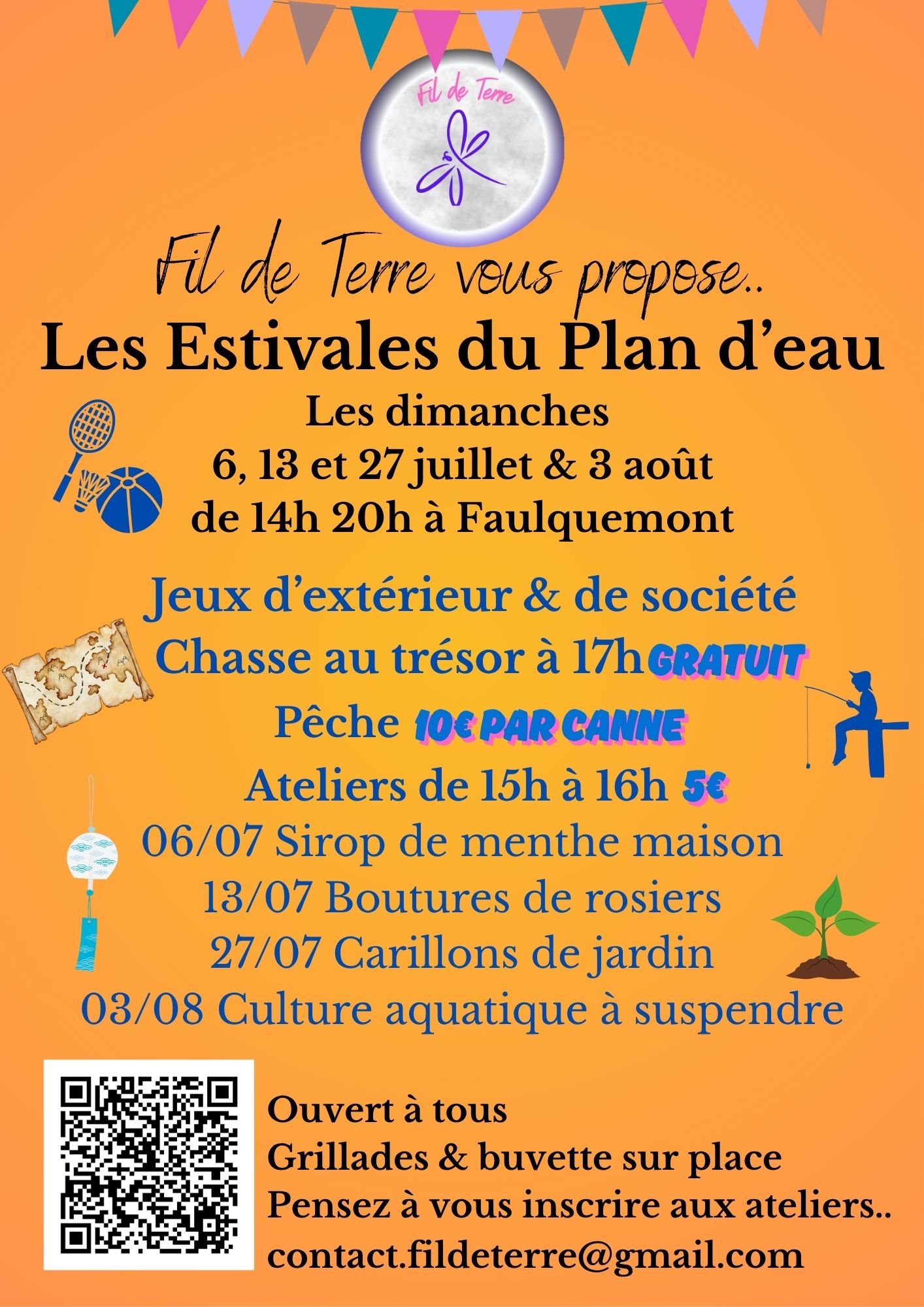 Jeux d’extérieur et de société. Chasse au trésor à 17h (gratuit). Pêche (10€/canne). Ateliers de 15h à 16h (sur inscription). Ouvert à tous. Grillades et buvettes sur place. Billetterie et information sur www.helloasso.com.
