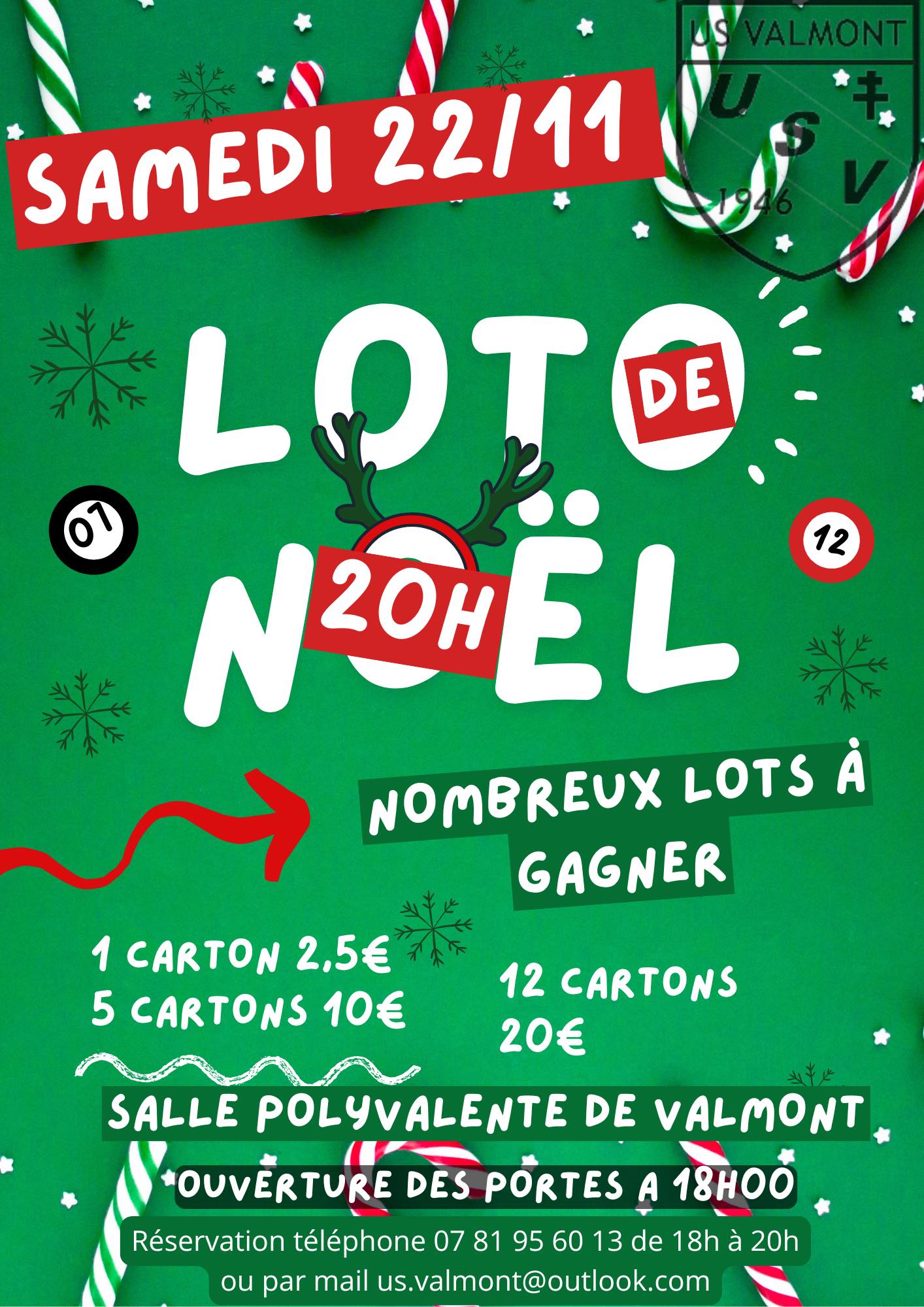 Loto Quine de Noël Sur réservation au 07 81 95 60 13 de 18h à 20h ou par mail à us.valmont@oyutlook.com. + Add to Google Calendar + iCal / Outlook export Date 22 Nov 2025 Expired! Time 18 h 00 min Location Salle polyvalente André Lair Organizer U.S. Valmont Share this event