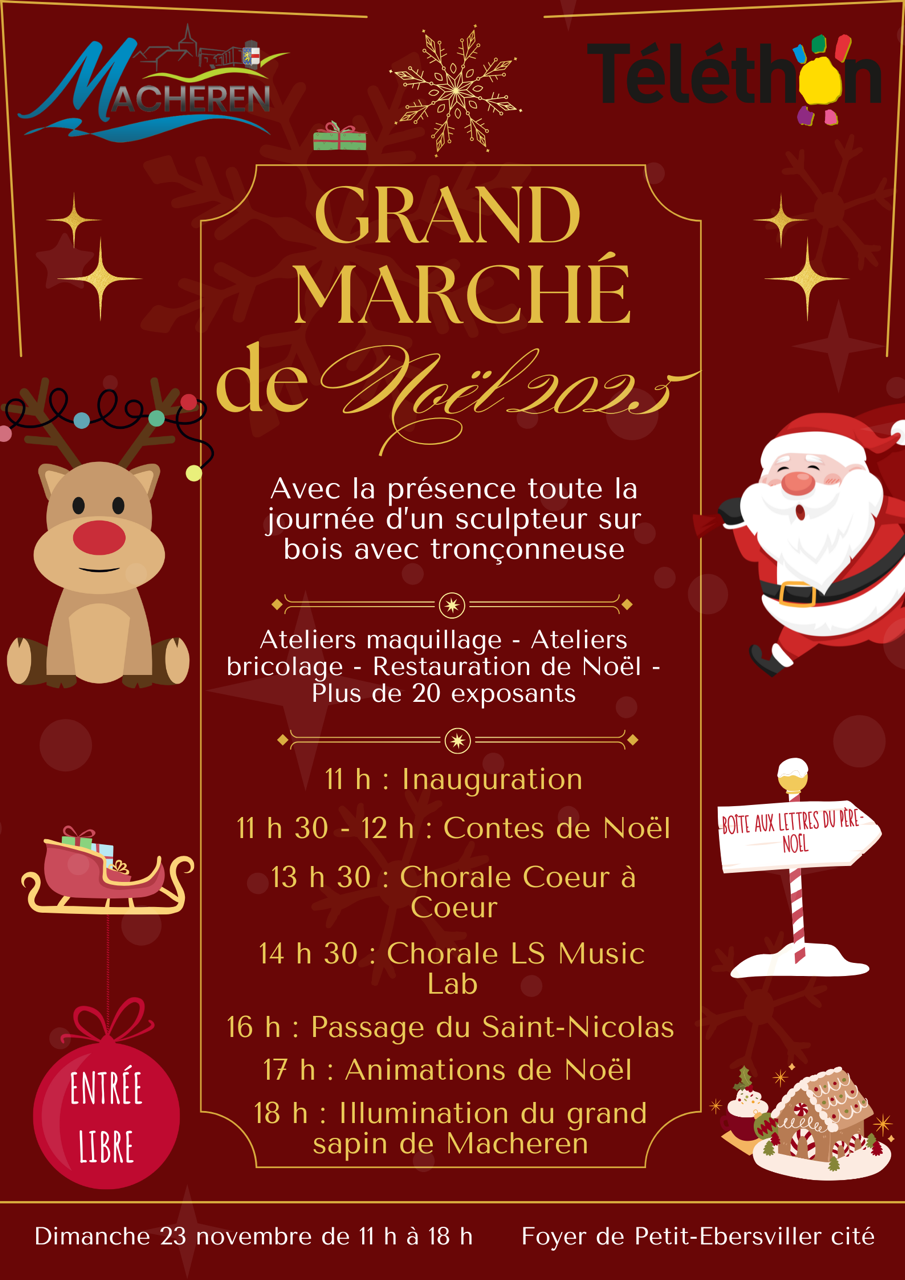 Marché de Noël + Add to Google Calendar + iCal / Outlook export Date 23 Nov 2025 Expired! Time 11 h 00 min - 18 h 00 min Location Foyer de la cité à Petit-Ébersviller Organizer La municipalité de Macheren Share this event
