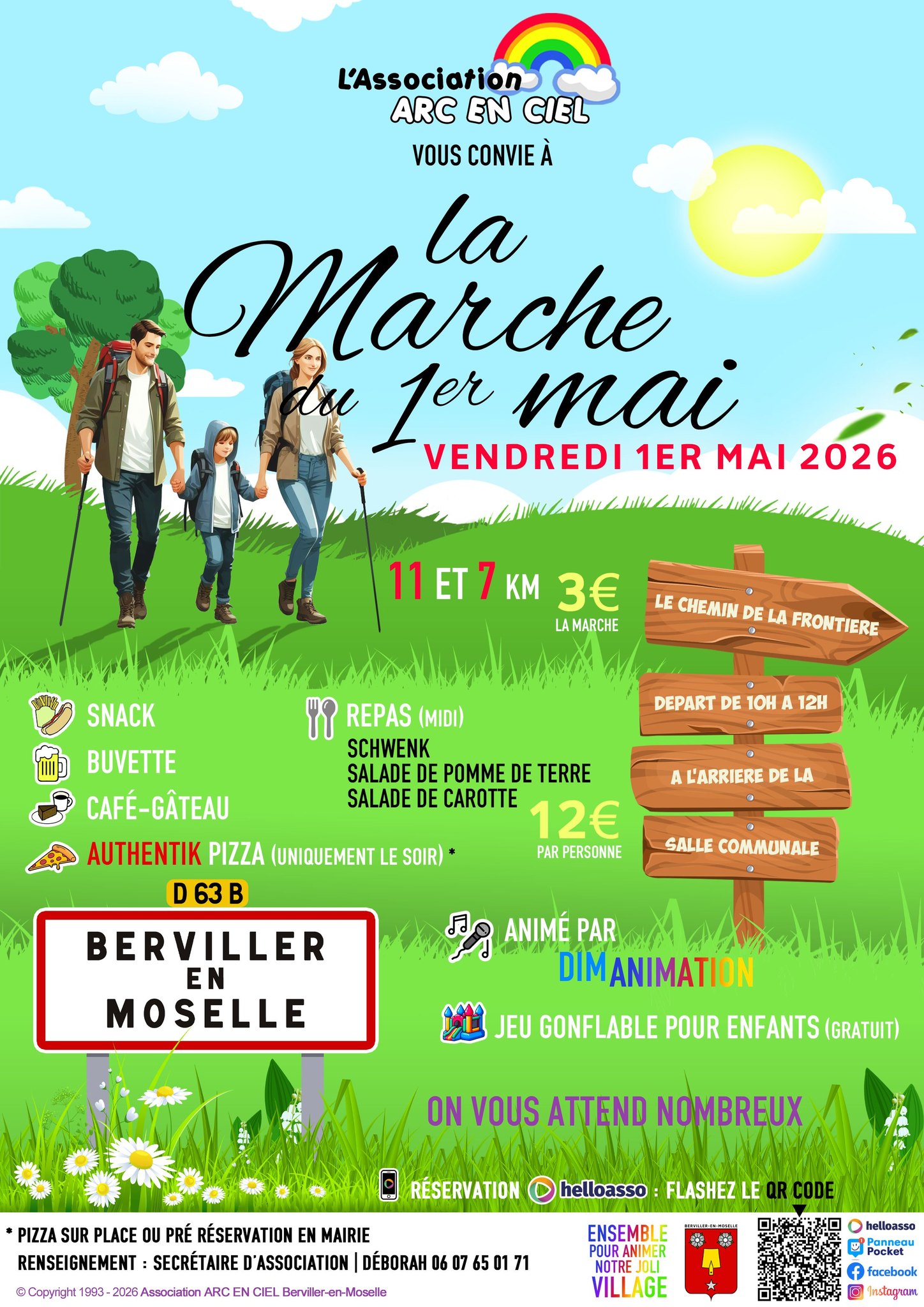 Inscription sur : https://www.helloasso.com/associations/association-arc-en-ciel-de-berviller/evenements/marche-du-1er-mai-2026