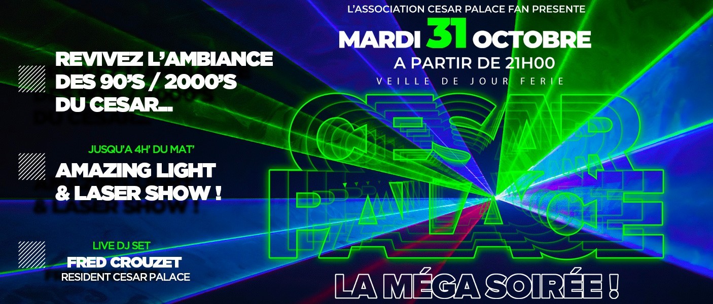 Revivez l’ambiance des 90’s/2000’s du César : Amazing Light & Laser Show… Live DJ set Fred CROUZET, résident du César Palace…