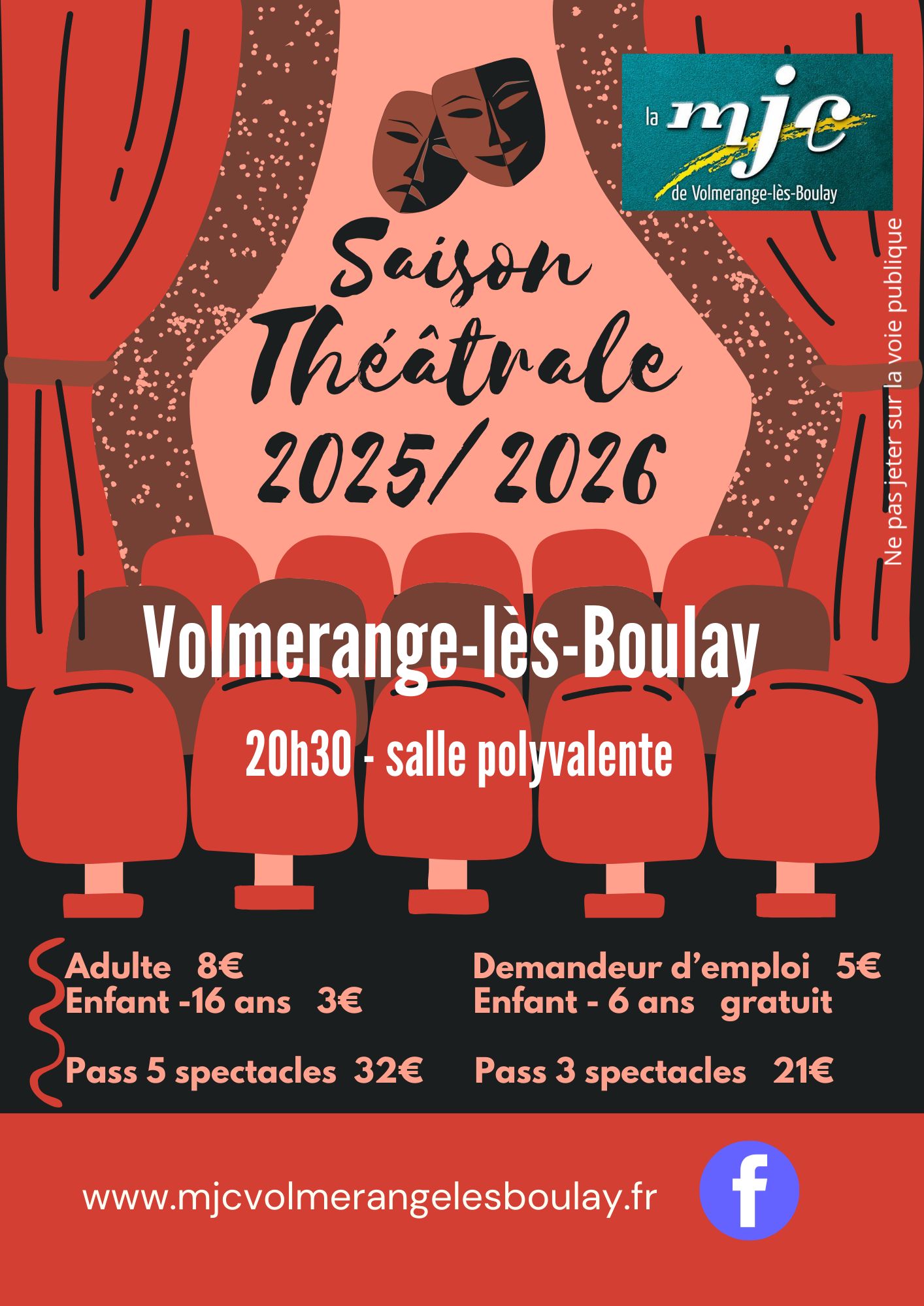 Représentation de théâtre : La propriété, c’est le vol par la Cie Fantaisie Théâtre organisée par la MJC. Tarifs : entre 3€ et 8€. Pour plus d’informations, cliquez ici ! + zum Google Calendar hinzufügen + iCal / Outlook export Datum 21 März 2026 Uhrzeit 20 h 30 min Ort Salle polyvalente de Volmerange-lès-Boulay Veranstalter Unkategorisiert Diese Veranstaltung teilen