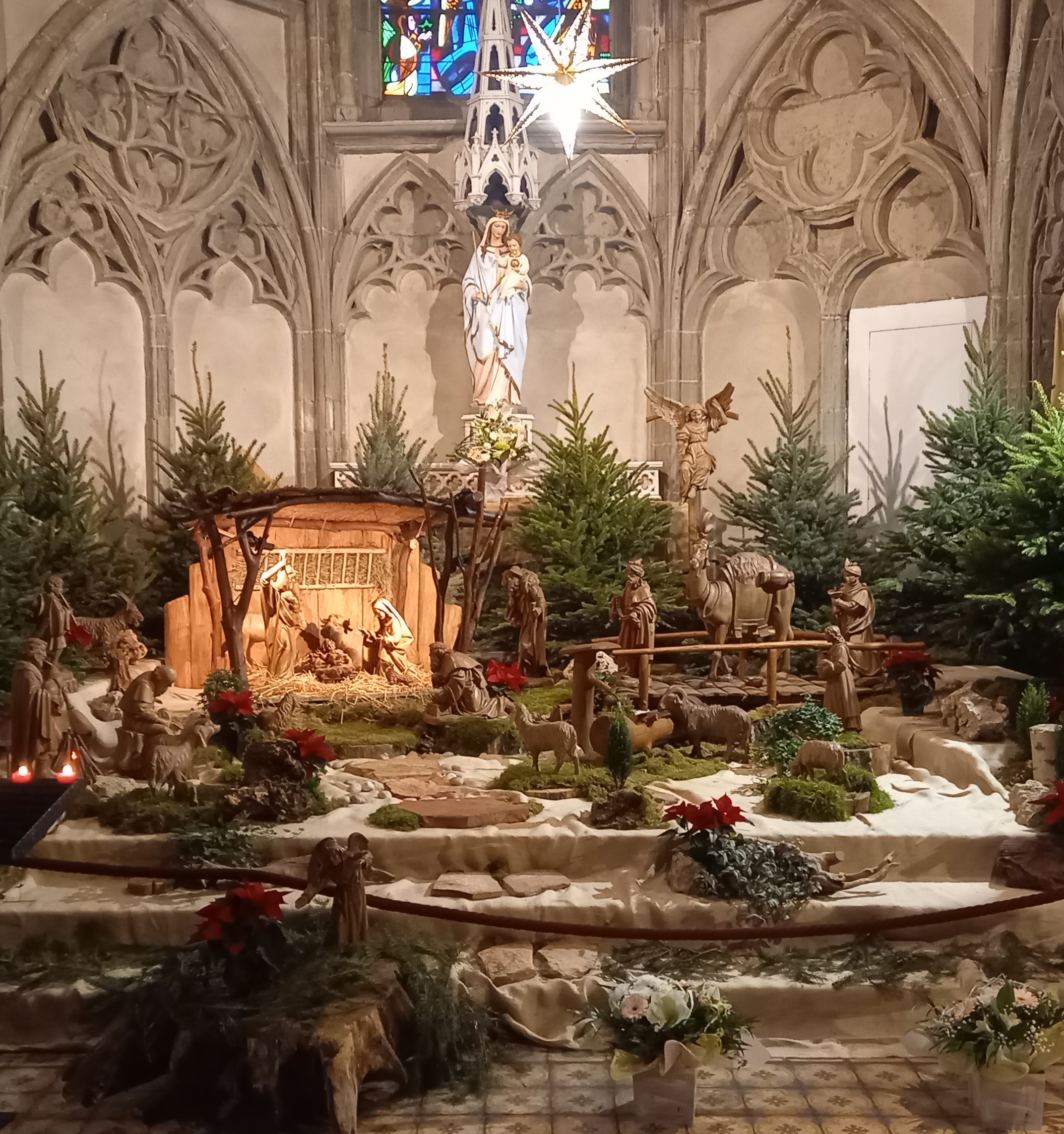 Dans le cadre de la Route des Crèches, découvrez la crèche de l’Abbatiale Sainte-Croix et ses personnages sculptés qui viennent d’Oberammergau en Bavière, village mondialement connu pour les Jeux de la Passion. La crèche est réalisée chaque année par les membres de l’association « Autour de l’Abbatiale » de Bouzonville, de la chorale Sainte-Croix et du Conseil de Fabrique.