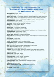 Salon littéraire + zum Google Calendar hinzufügen + iCal / Outlook export Datum 01 Feb. 2026 Uhrzeit 10 h 00 min - 18 h 00 min Ort Salle des Fêtes de Lixing-lès-Saint-Avold Diese Veranstaltung teilen