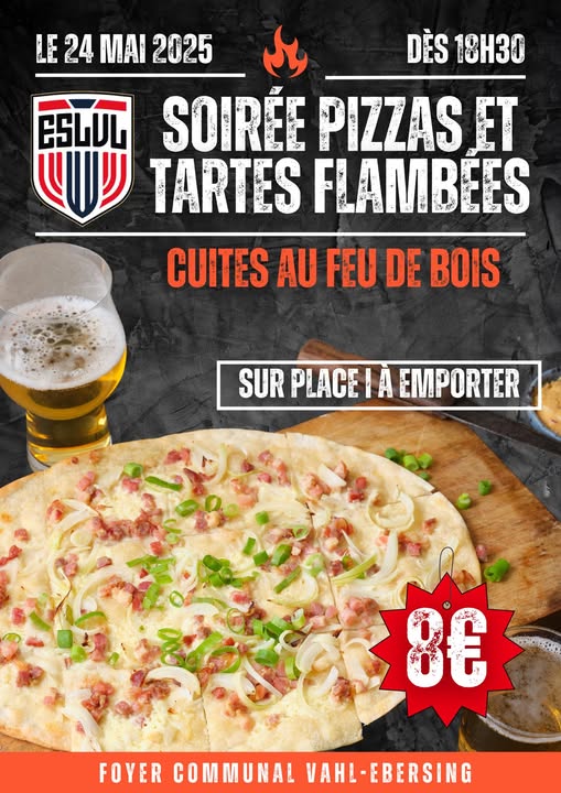 Soirée pizza/flamm’s Informations sur https://www.facebook.com/profile.php?id=100008293667063 + Ajouter à mon Agenda Google + iCal / Outlook export Date 24 Mai 2025 Expiré! Heure 19 h 00 min Lieu Foyer de Vahl-Ébersing - Vahl-Ébersing (57660) Organisateur ESLVL Partagez cet événement