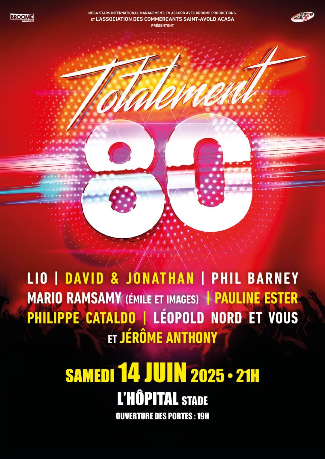 Soirée totalement 80 Billets en vente à l’Office de tourisme. Tarif : tribune : 26€, pelouse : 21€ Enfant : 16€. Ou sur https://my.weezevent.com/totalement-80-a-lhopital-57 + Ajouter à mon Agenda Google + iCal / Outlook export Date 14 Juin 2025 Expiré! Heure 21 h 00 min Lieu Stade de football de l'Hôpital Complexe Sportif J-M Conti, 57490 L'Hôpital Organisateur A.C.A.S.A. Partagez cet événement