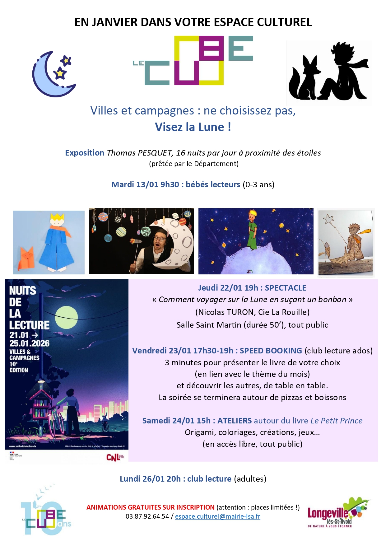 Tout public. Gratuit pour tous sur inscription au 03 87 92 64 54 ou à espace.culturel@mairie-lsa.fr.