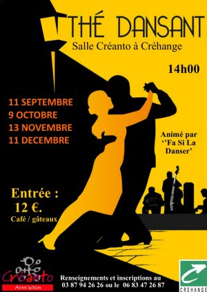 Thé dansant + Ajouter à mon Agenda Google + iCal / Outlook export Date 09 Oct 2024 Expiré! Heure 14 h 00 min - 18 h 00 min Lieu Salle Créanto de Créhange 4 rue de Metz / 57690 Créhange Partagez cet événement