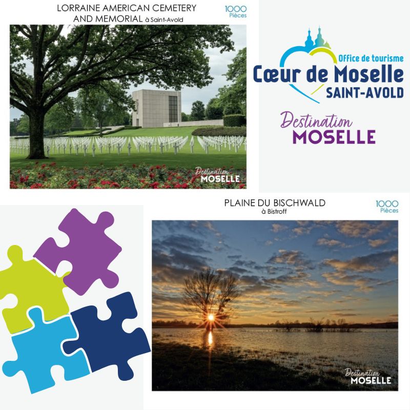 En partenariat avec Moselle Attractivité, l’Office de tourisme vous propose 2 puzzles 1000 pièces pour illustrer la beauté et le patrimoine du Cœur de Moselle. Dimensions du puzzle assemblé : 69 x 47,8 cm.