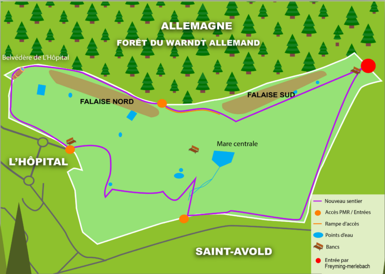 Un sentier aménagé permet de découvrir la Carrière de l’Hôpital/Saint-Avold sur une distance de 5,7 km, selon le schéma ci-dessous (source : CASAS)