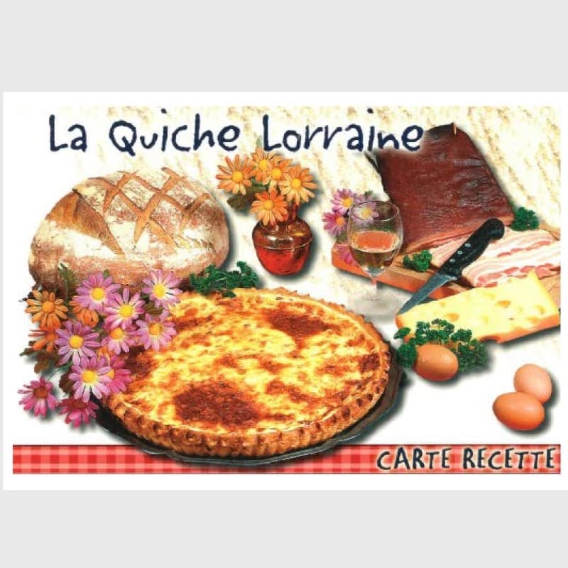 Postcard with cooking recipe the quiche lorraine
