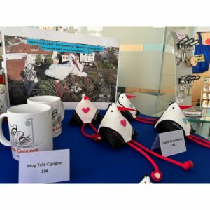 Discover the couple Maurice and Mélodie from Sarralbe in a large model (14€ each) as well as their little ones (9€ each) with tele-stork mugs (10€) on sale at the Tourist Office.